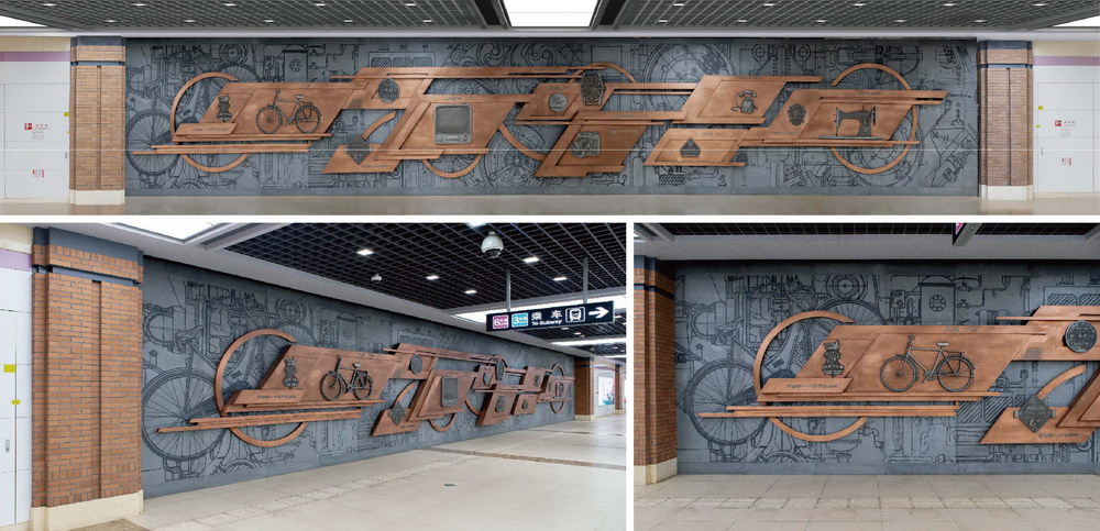 地鐵六號線工業文化主題站-紅旗南站《輕工杰作-引領時代》浮雕墻