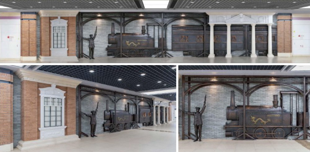 地鐵六號線工業文化主題站-復興路站《鐵路風云-龍號機車》浮雕墻